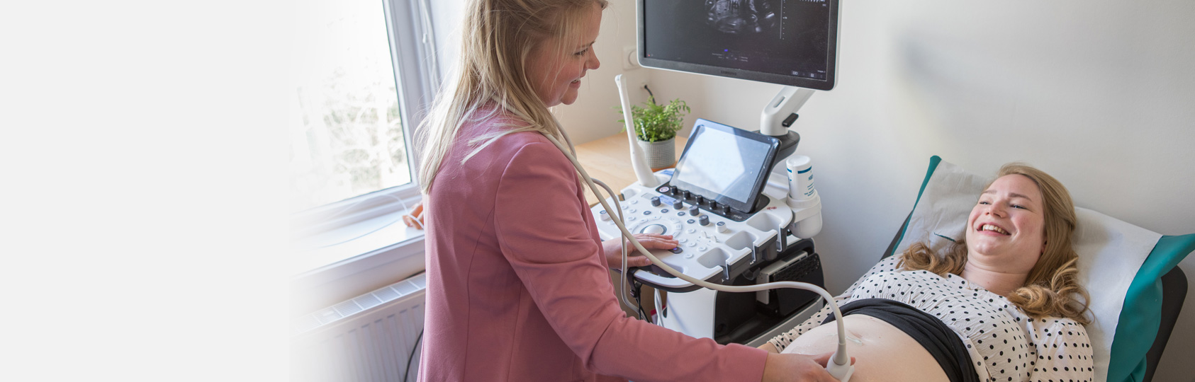 Met echografie brengen we je baarmoeder en kindje in beeld met behulp van geluidsgolven. Tijdens het maken van de echo zetten we de echokop op je buik. Deze zendt geluidsgolven die door je organen in je lichaam worden teruggekaatst. De echokop neemt de geluidsgolven weer op, waarna de computer ze omzet en wij het beeld op de monitor kunnen zien.